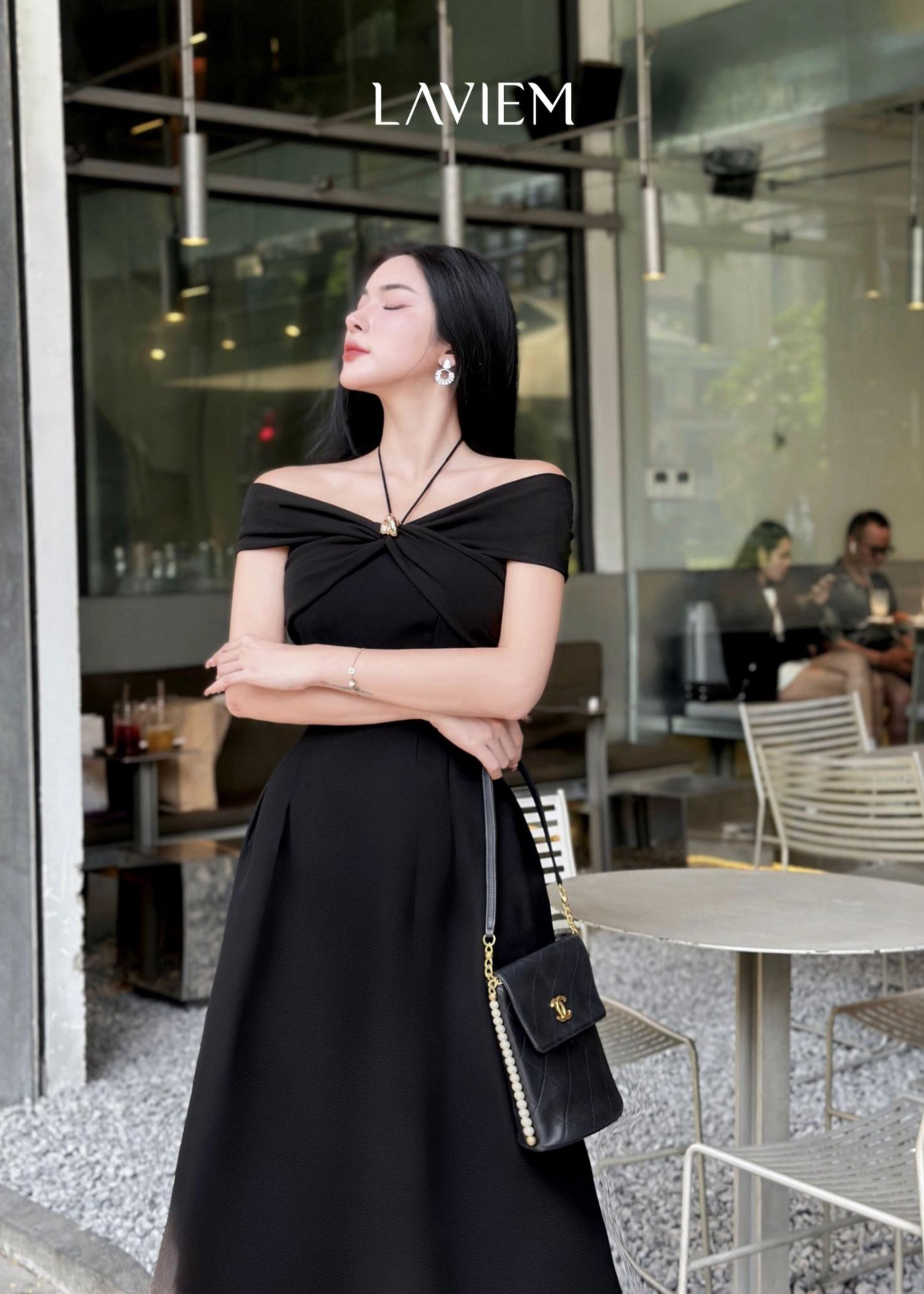 Draped in a soft cream white tone, the Findy Dress captures feminine elegance with its off-shoulder silhouette and alluring halter neckline β a perfect harmony of grace and sophistication for the LAVIEM lady.