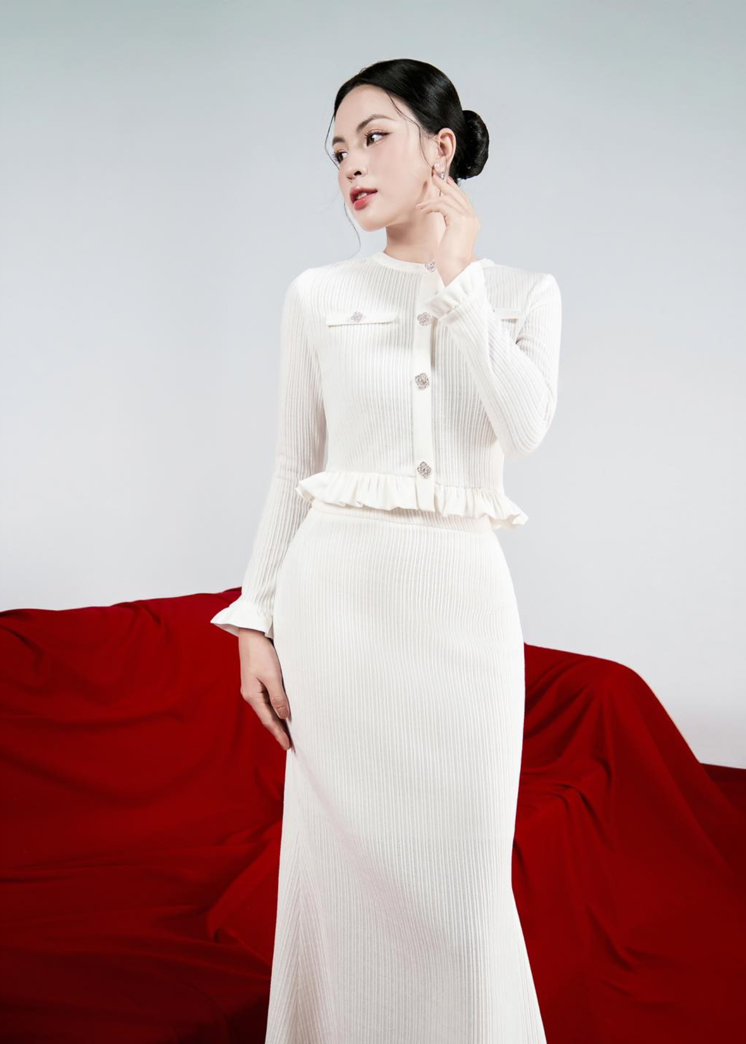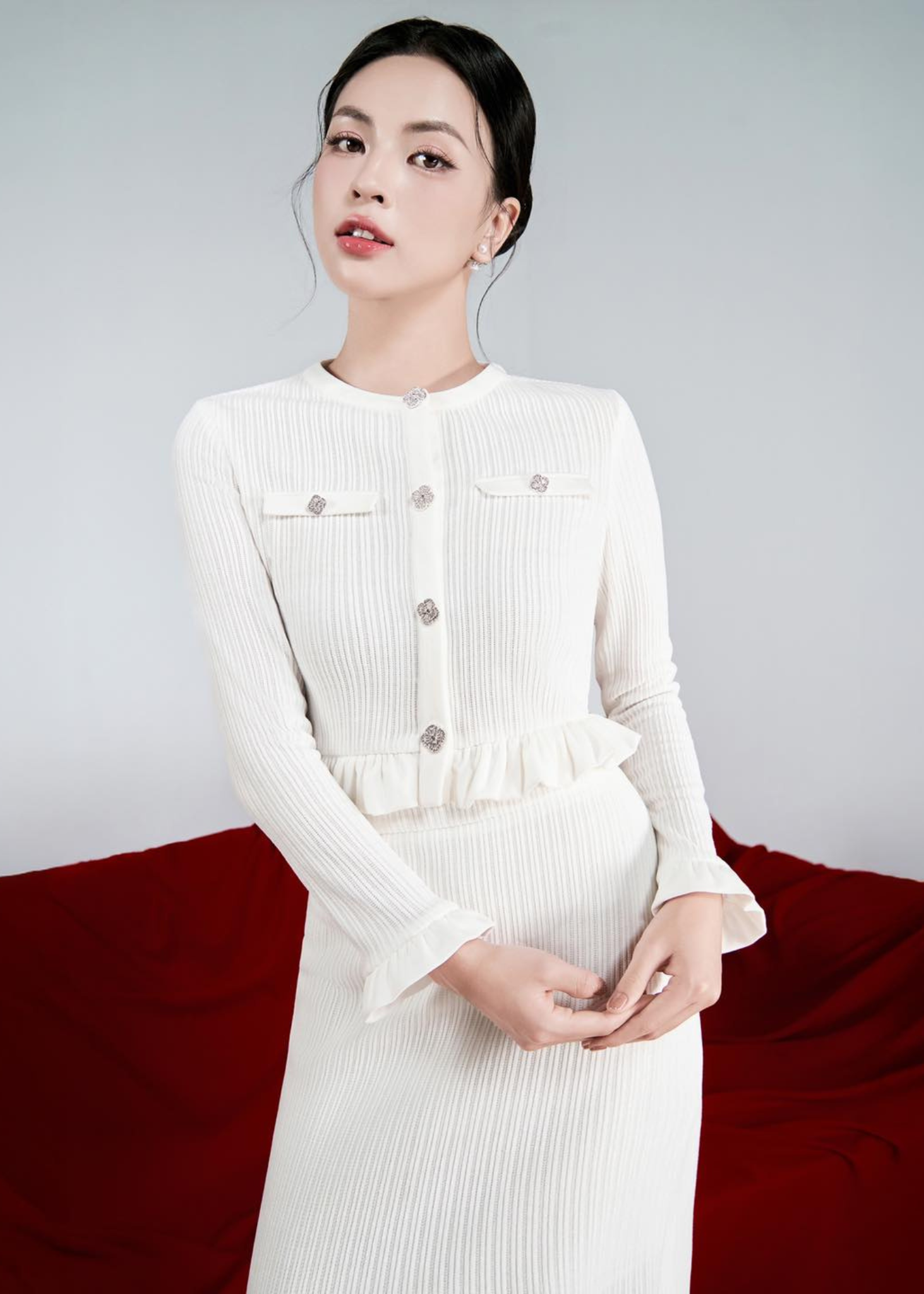 • Material: Double velvet combined with Korean corduroy, embellished with premium gemstone buttons