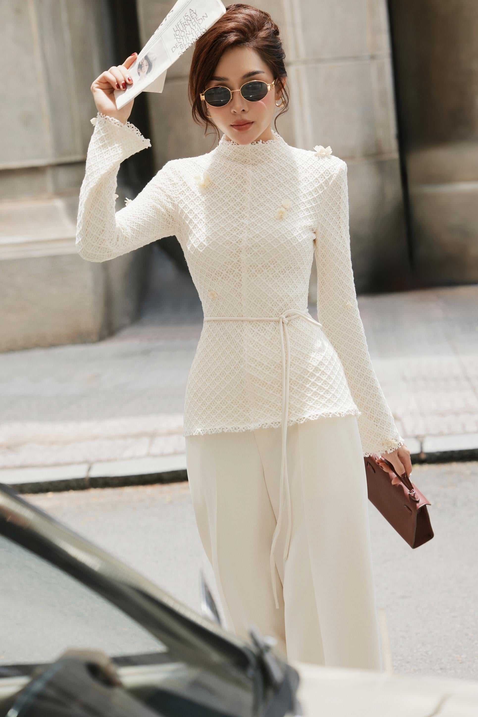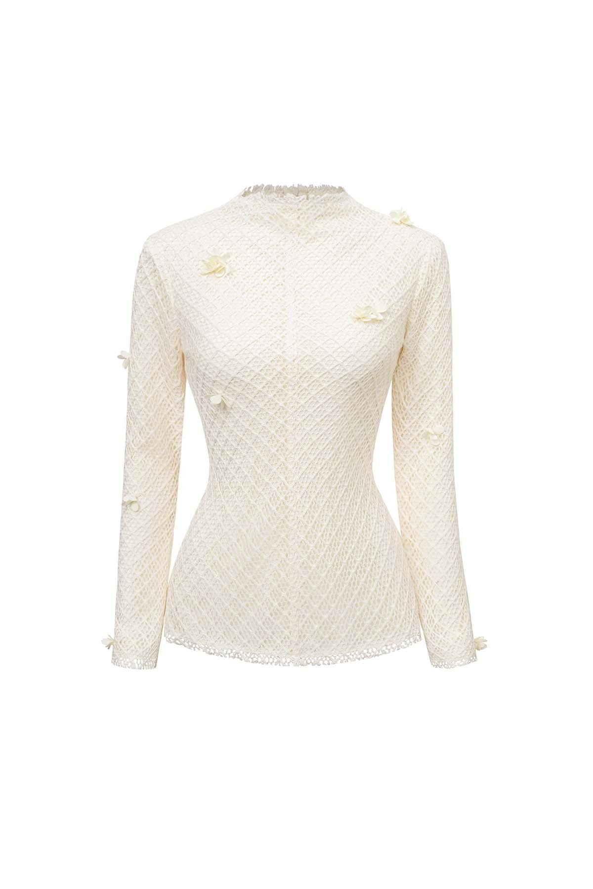 • Material: Diamond-pattern lace with handcrafted floral embellishments, fully lined